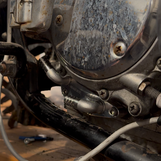 Make your CB750 oil can upgrade easier with this adapter plate and fitting kit. Designed for builds that need new feed lines into the engine, this setup eliminates the hassle of cutting stock tubes and reworking original fittings.